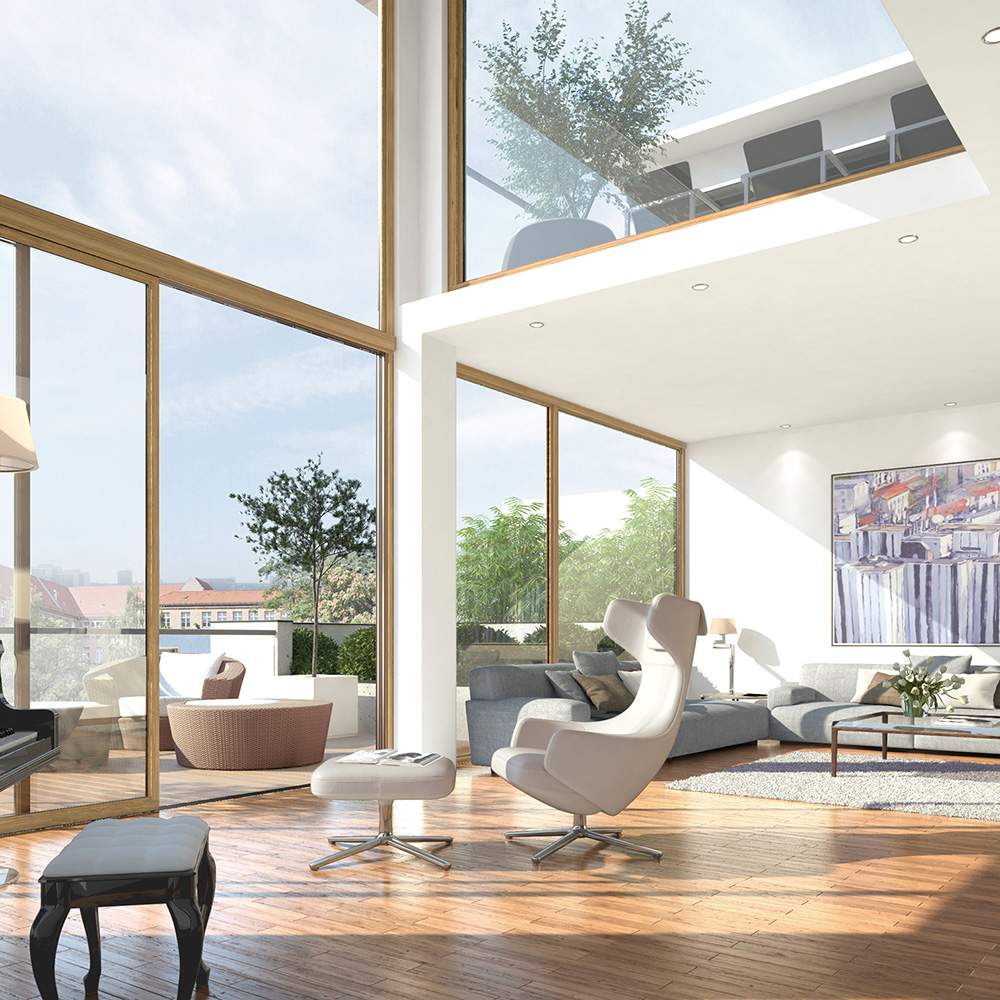 Bei der Gestaltung von THE YARD wurde akribisch auf hochwertige Materialien, intelligente Aufteilungen, durchdachte Strukturen und komfortable Extras geachtet. Großzügige Deckenhöhen in Kombination mit raumhohen, sturzlosen Fenstern schaffen ein lichtes Wohngefühl. Echtholz-Parkettböden in den Wohnräumen, Natursteinbeläge und hochwertige Fliesen in den Bädern sorgen zudem auf Schritt und Tritt für ein edles Ambiente. Die moderne Fußbodenheizung garantiert Ihnen immer die perfekte Temperatur – bei stets niedrigen Energiekosten und gutem Gewissen, denn sie wird durch einen Fernwärmeanschluss versorgt. Jedes Zimmer verfügt über eine eigene Temperaturregulierung, sodass Sie selbst bestimmen können, wo es wie warm sein soll.
